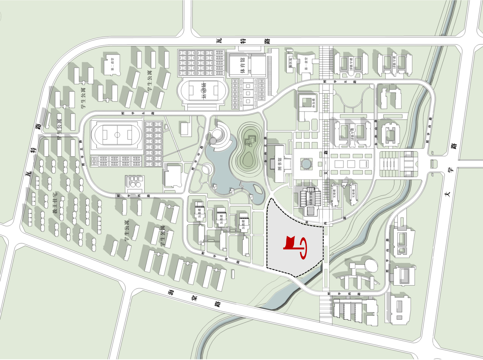 请根据背景资料完成相应小题选项,其中单选题四选一(A、B、C、D选项),多选题五选二或三或四(A、B、C、D、E选项);不选、多选、少选、错选均不得分。 42-1.根据图示可推知该建筑位于校园的( )。