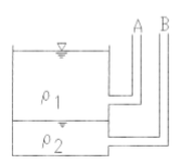 156、图示为两种液体盛于容器中,且密度ρ₂>ρ₁,则AB两测压管中的液面必为( )。